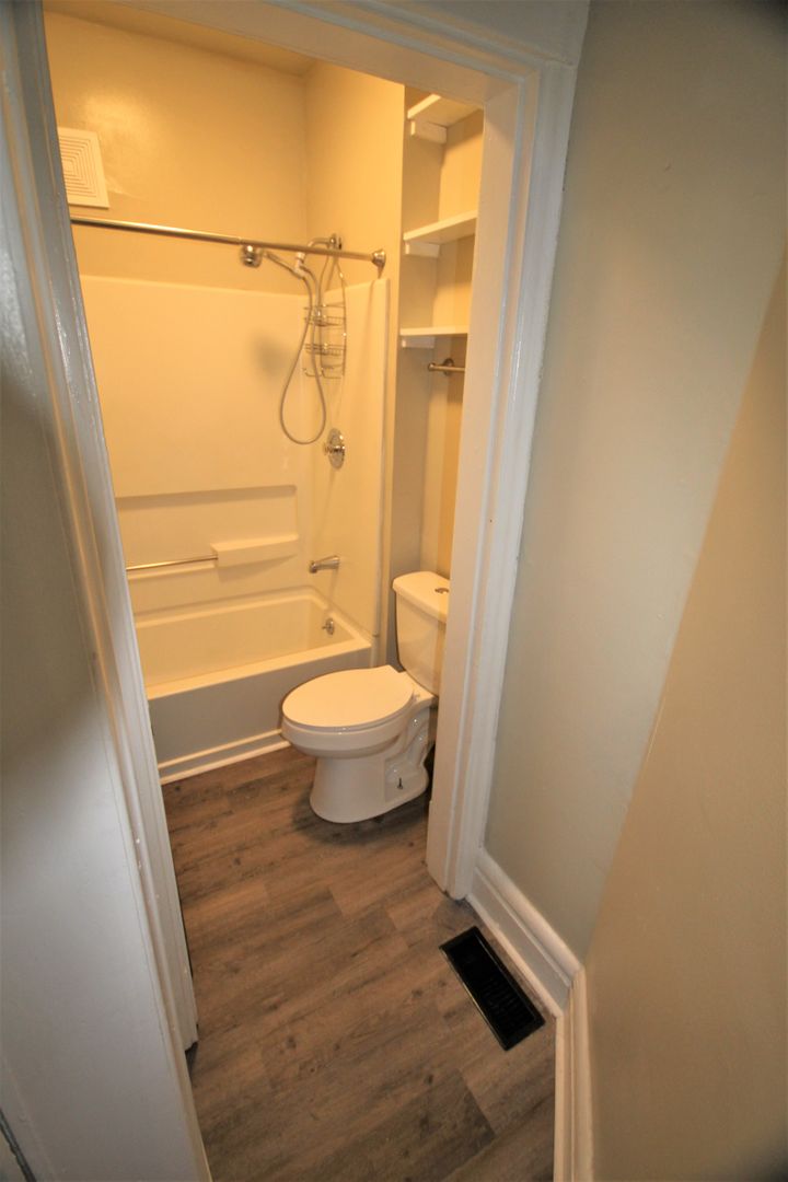 Now accepting applications for Fall 2026- This is a spacious 1 bedroom, 1 bath first floor duplex. Updated with laminate flooring throughout, private fenced in back yard, built in shelving, tons of storage throughout, decorative fireplace, ceiling fans, shared laundry in the basement with individual washer/dryer hookups and tons of additional storage space. on and off street parking, and more! Great location for an easy commute to and from campus, bus lines, and major highways!