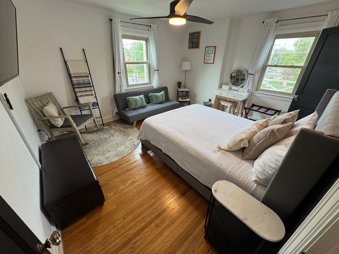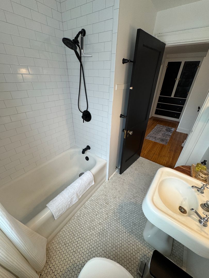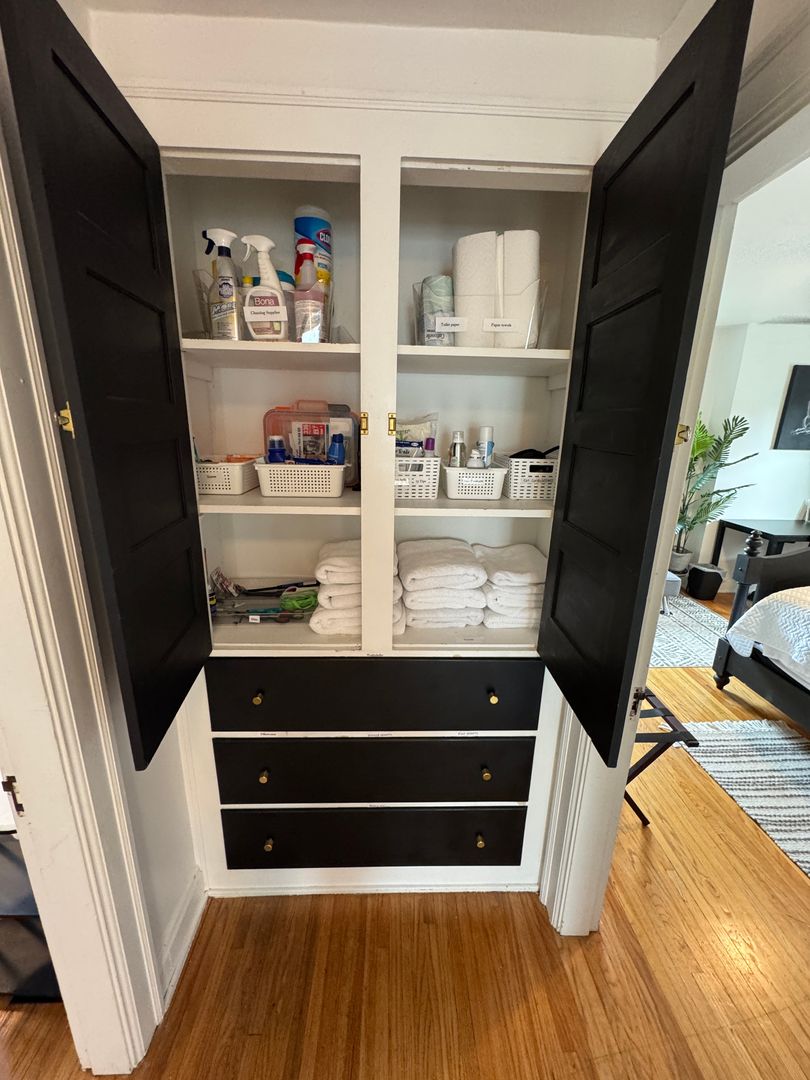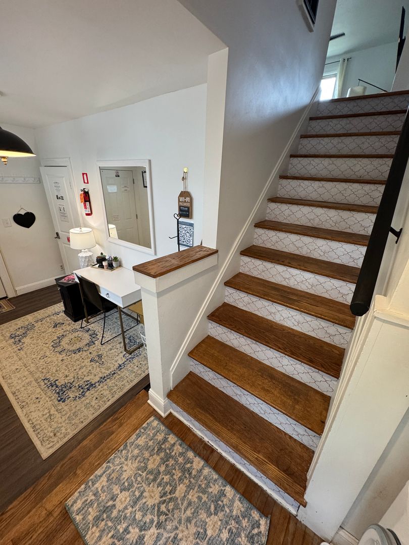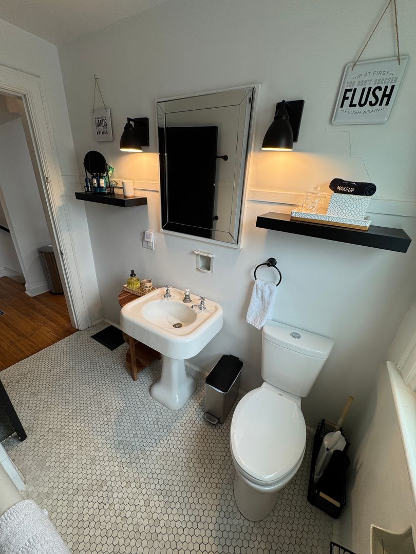 Fully furnished and stylish 2 bedroom apartment located above our rental office, in the heart of Clintonville, and includes ALL utilities. It features its own private entrance and designated off street parking space. It offers beautiful hardwood flooring throughout, an updated kitchen with all the appliances and supplies you would need, bar island seating for dining, a beautiful full bathroom with additional linen area, 2 large bedrooms both with large closets, queen sized beds, and individual smart Tv's. Large living room space with a second office area and 3rd smart TV. Designated office area on the first floor offers great lighting, and away from the main part of the unit, which makes working here from home an ideal set up. Private laundry in unit. Off Street parking, paver patio for relaxing, and so much more!