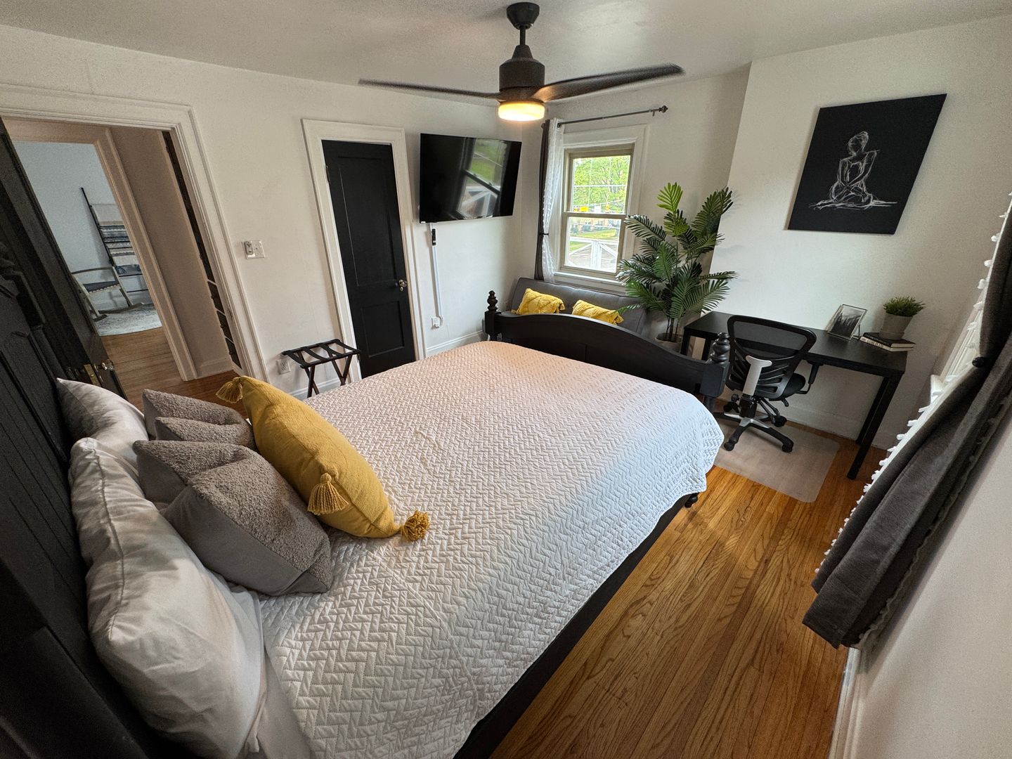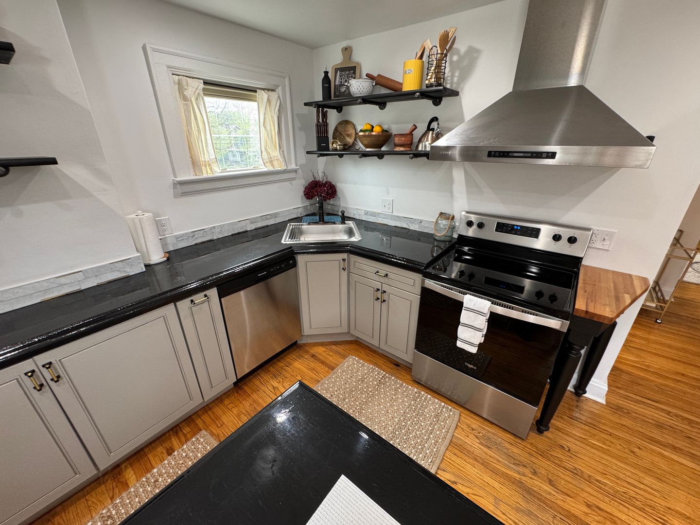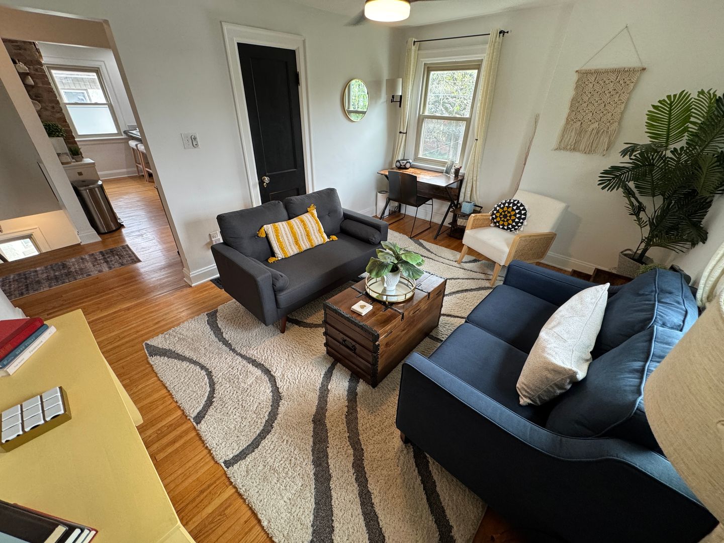 Fully furnished and stylish 2 bedroom apartment located above our rental office, in the heart of Clintonville, and includes ALL utilities. It features its own private entrance and designated off street parking space. It offers beautiful hardwood flooring throughout, an updated kitchen with all the appliances and supplies you would need, bar island seating for dining, a beautiful full bathroom with additional linen area, 2 large bedrooms both with large closets, queen sized beds, and individual smart Tv's. Large living room space with a second office area and 3rd smart TV. Designated office area on the first floor offers great lighting, and away from the main part of the unit, which makes working here from home an ideal set up. Private laundry in unit. Off Street parking, paver patio for relaxing, and so much more!