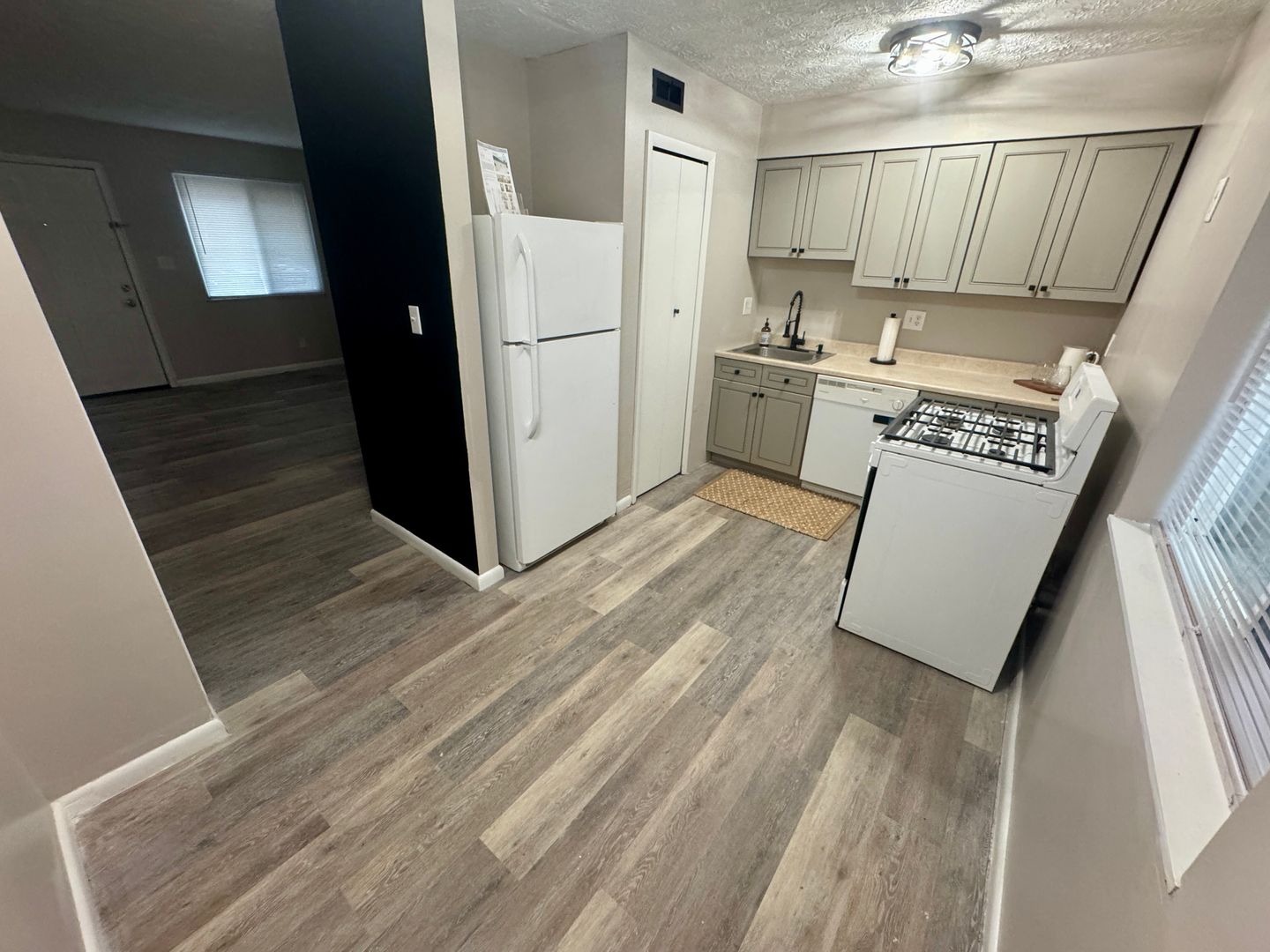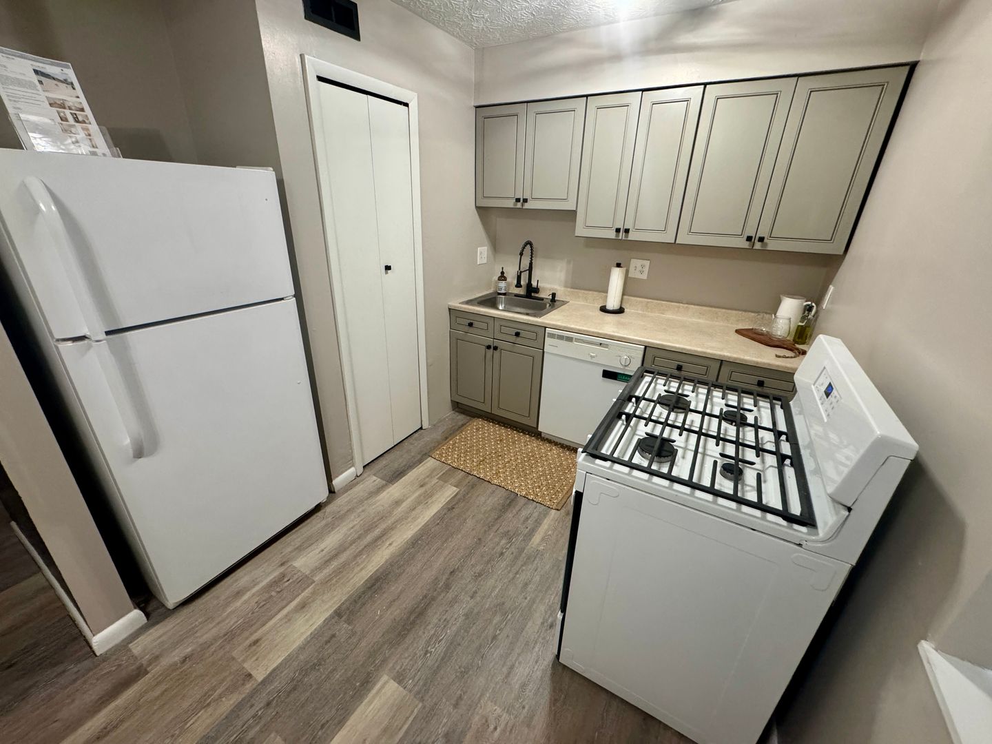 AVAILABLE NOW! This is a fantastic 2 bedroom, 1 bath first floor unit. Completely updated throughout. Equipped with a full sized stove, dishwasher, fridge and Washer/Dryer. Eat in space off the kitchen, built in bookshelf, beautiful brand new laminate flooring throughout, washer/dryer in your unit, awesome chalkboard wall, large bedrooms, newer windows, central air, off street parking, right on the cabs and COTA bus line, and so much more! This is a great unit that will go quick!