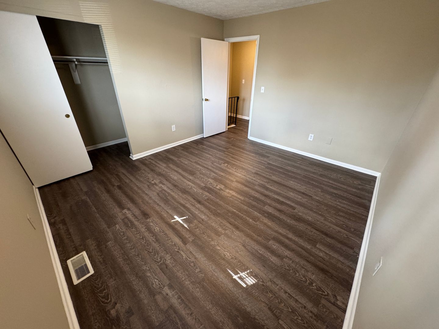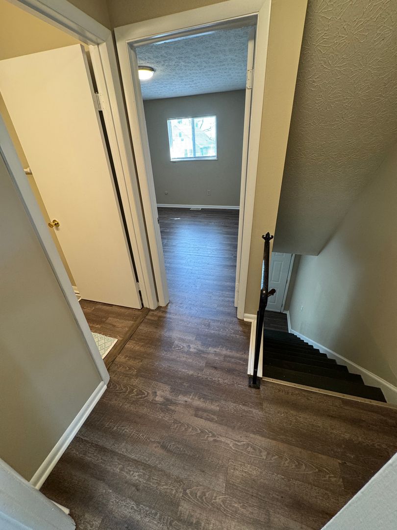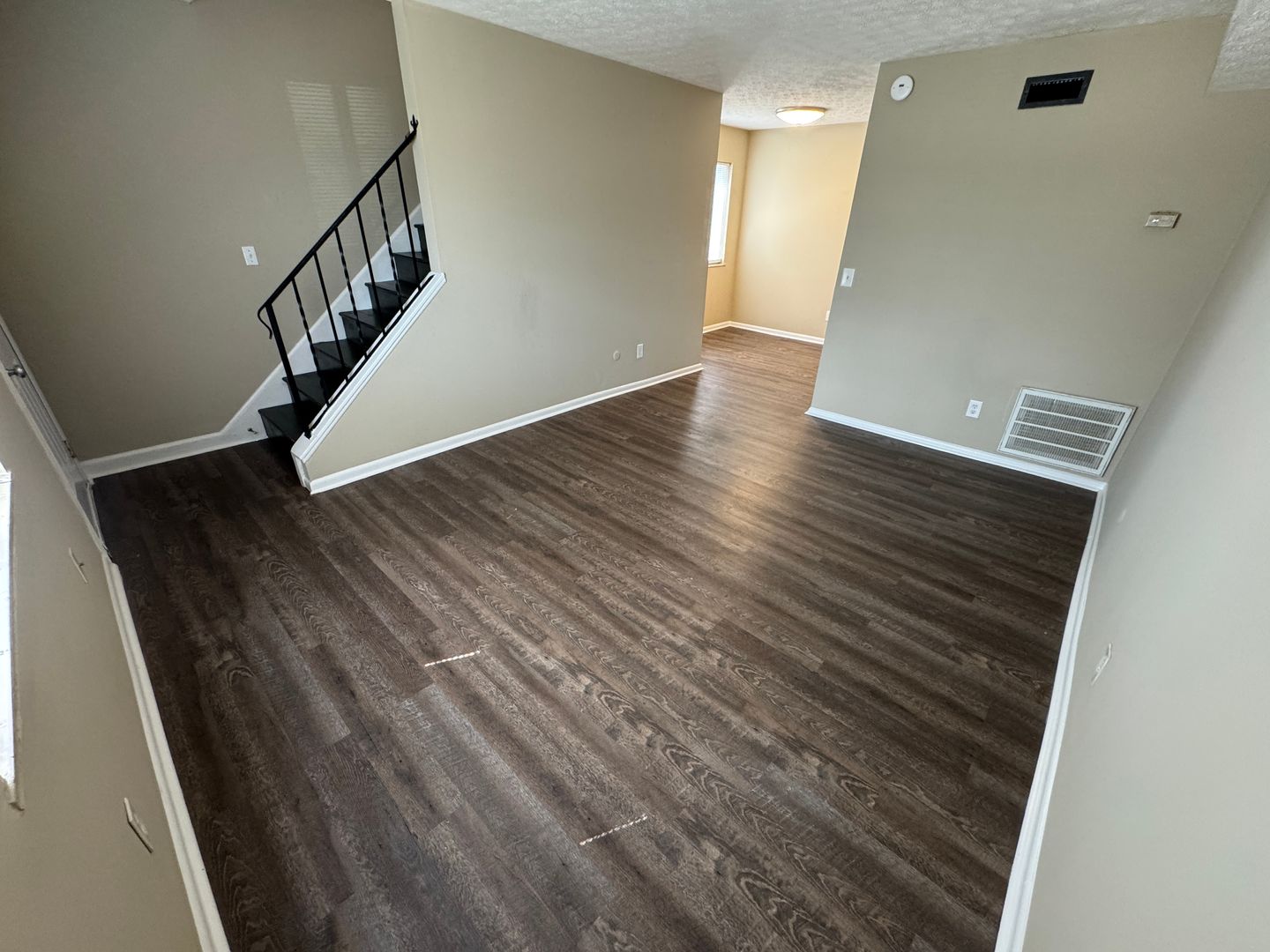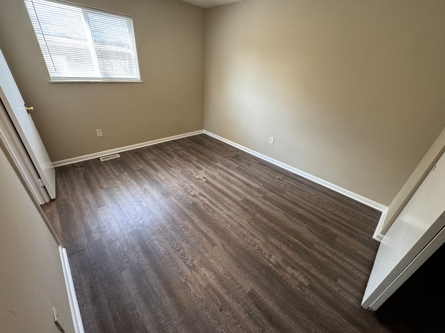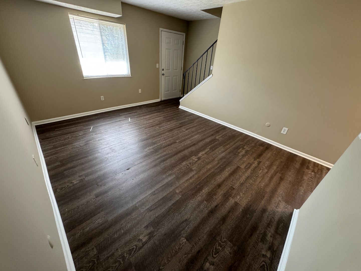 This is a fantastic 2 bedroom/1 bath townhouse style apartment. This unit greets you as you walk in with a great sized living room, additional dining room space, and full kitchen. Fridge, stove, and dishwasher are provided. Upstairs are 2 large bedrooms each with huge closets and a full bathroom. It also features central air, brand new LVP flooring throughout, endless storage space, on site laundry, individual front porch, free on and off street parking, and so much more!
