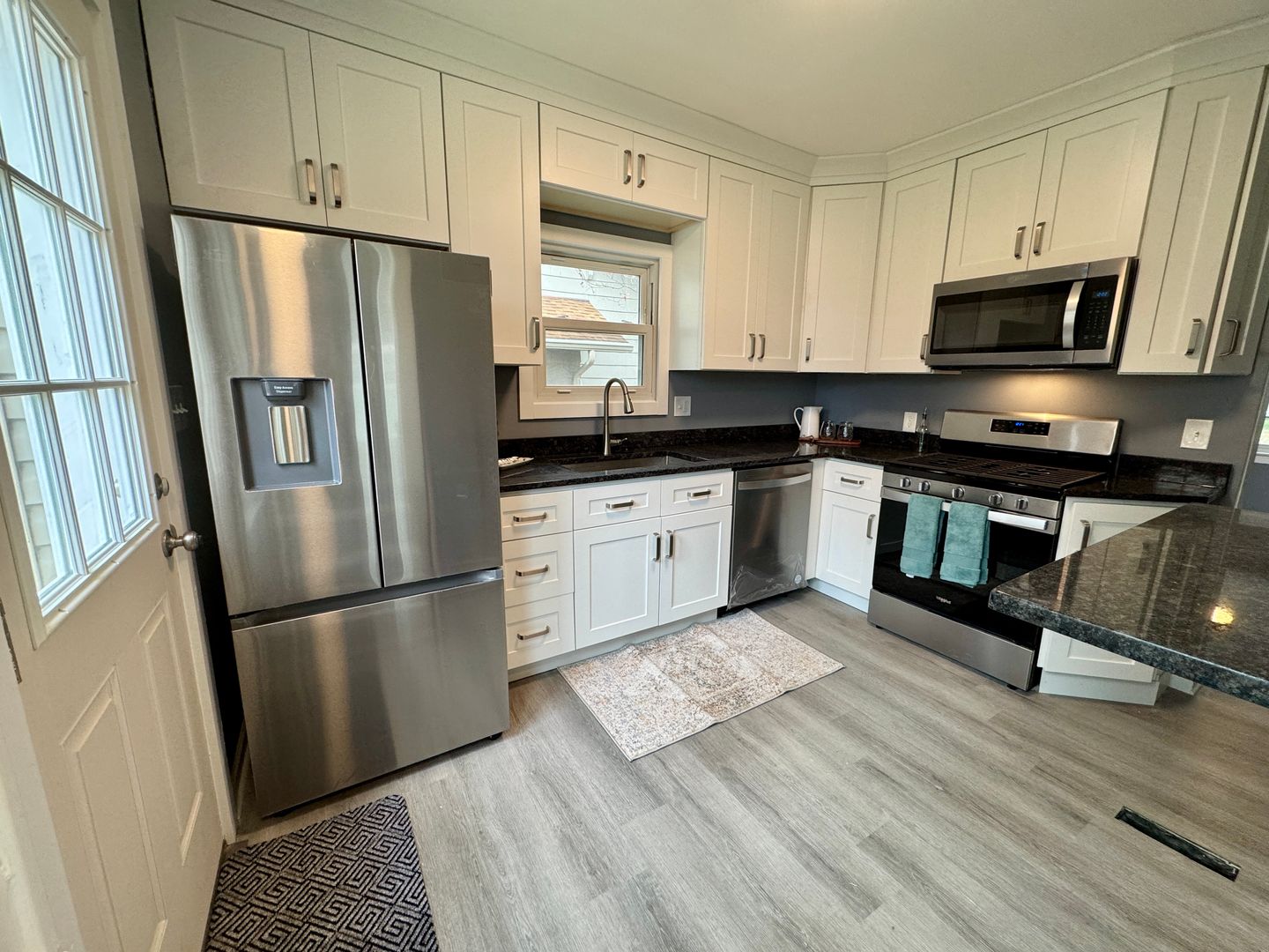 Newly remodeled 3 bedroom single family home in Clintonville. As you enter the home you are welcomed into the massive living space with tons of (brand new) windows, decorative fireplace, and built in bookshelf, along with an additional dining room area on the first floor. There is beautiful new flooring installed throughout, an updated kitchen with new cabinetry, stainless steel appliances, and countertops. Head upstairs to 3 bedrooms featuring tons of lighting and windows, new carpet, remodeled full bathroom, and additional linen space. This home also features a large full basement with laundry area, attached one car garage, large newly built deck that leads out to your even bigger fenced in yard. Central air, new windows, and more!