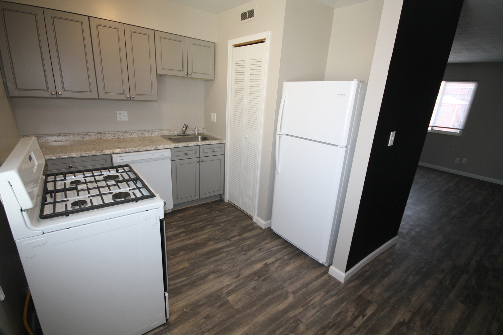 NOW ACCEPTING APPLICATIONS FOR FALL 2026!!! This is a totally remodeled 2nd floor, 2 bedroom/1 bath unit. It features brand new laminate flooring throughout, updated kitchen with all new appliances and cabinetry, large chalkboard accent wall, washer/dryer, updated bathroom, two great sized bedrooms, central air, on and off street parking, and so much more!